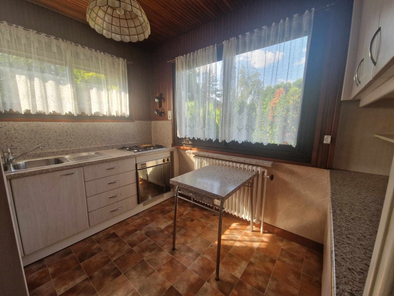 PARC DE LA CLOCHE! Maison individuelle de 80m2 comprenant : entree avec veranda, double sejour, cuisine separee, degagement avec placard, 2 chambres, salle de bains, wc. Rez-de-jardin compose dun garage, une piece buanderie, cuisine, salle deau et wc...