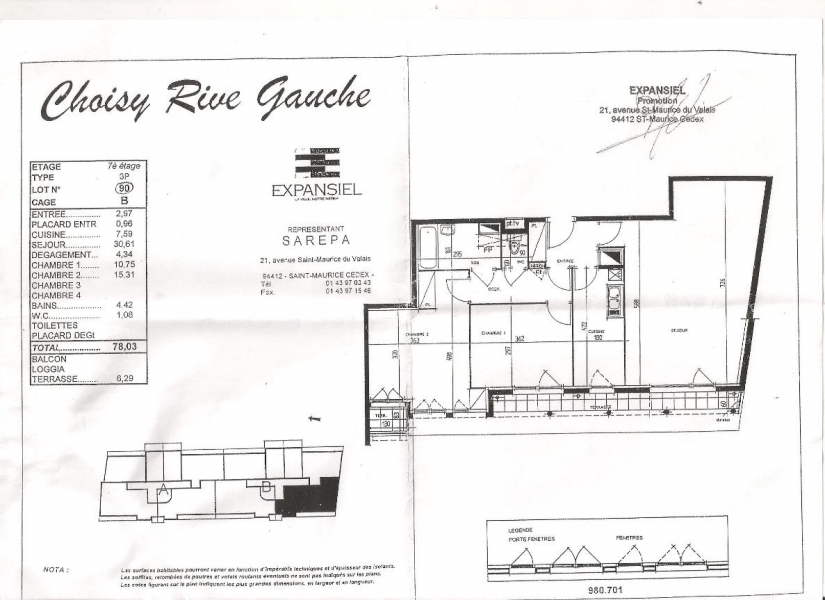 et du futur Tzen. Appartement bien agence offrant de beaux volumes comprenant : entree avec placard, double sejour donnant blacon, cuisine equipee, degagement, ...